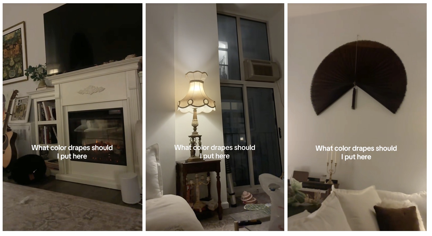 Grace posted a video of her flat, asking her followers: "What color drapes should I put here? Was gonna do all white but now I’m thinking a color might compliment the big fan on the wall". Set to a piece of stock-music: "Serene Peace" by Ashot Danielyan.