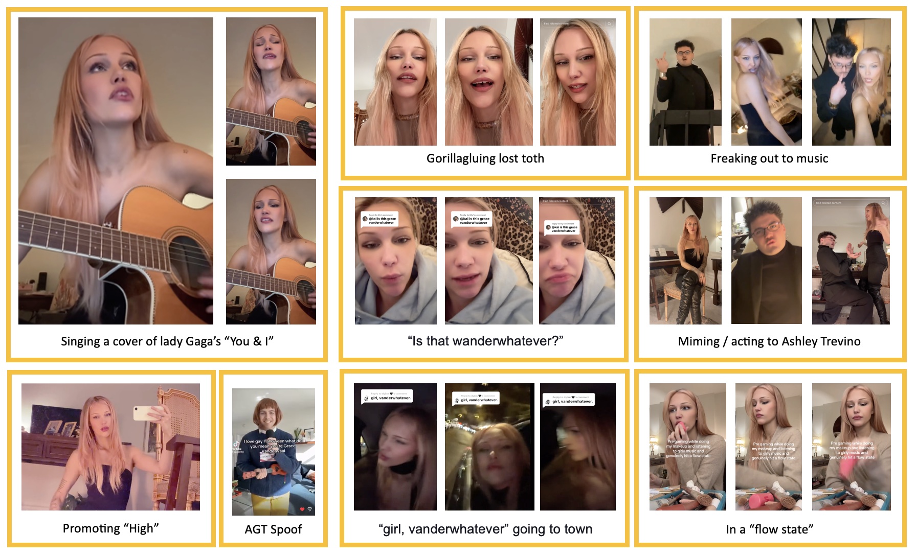 Grace posted a cover of Lady Gaga’s "You and I" (links on performance page) – and a bunch of silly stuff on TikTok (not all represented here).