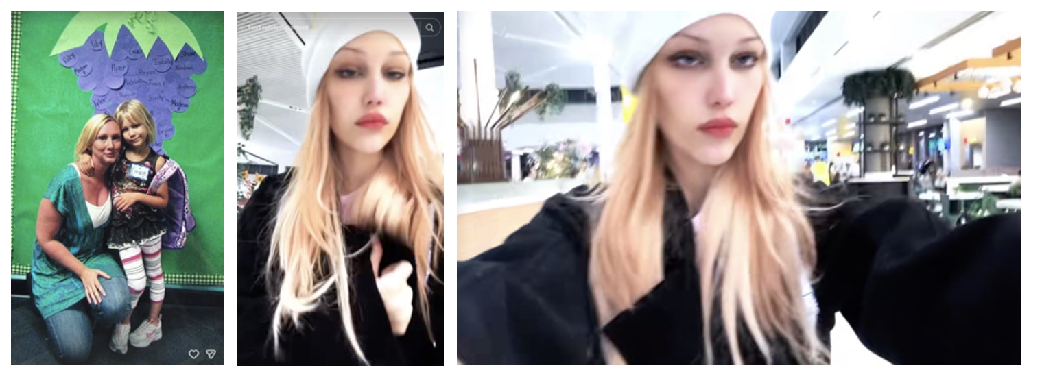 Grace posted a picture of her and her mother from when Grace atended kindergarden, and a tiktok of Grace waking thorugh an airport in her “Airport outfit”, set to John + Jane Q’s "Watermelon".