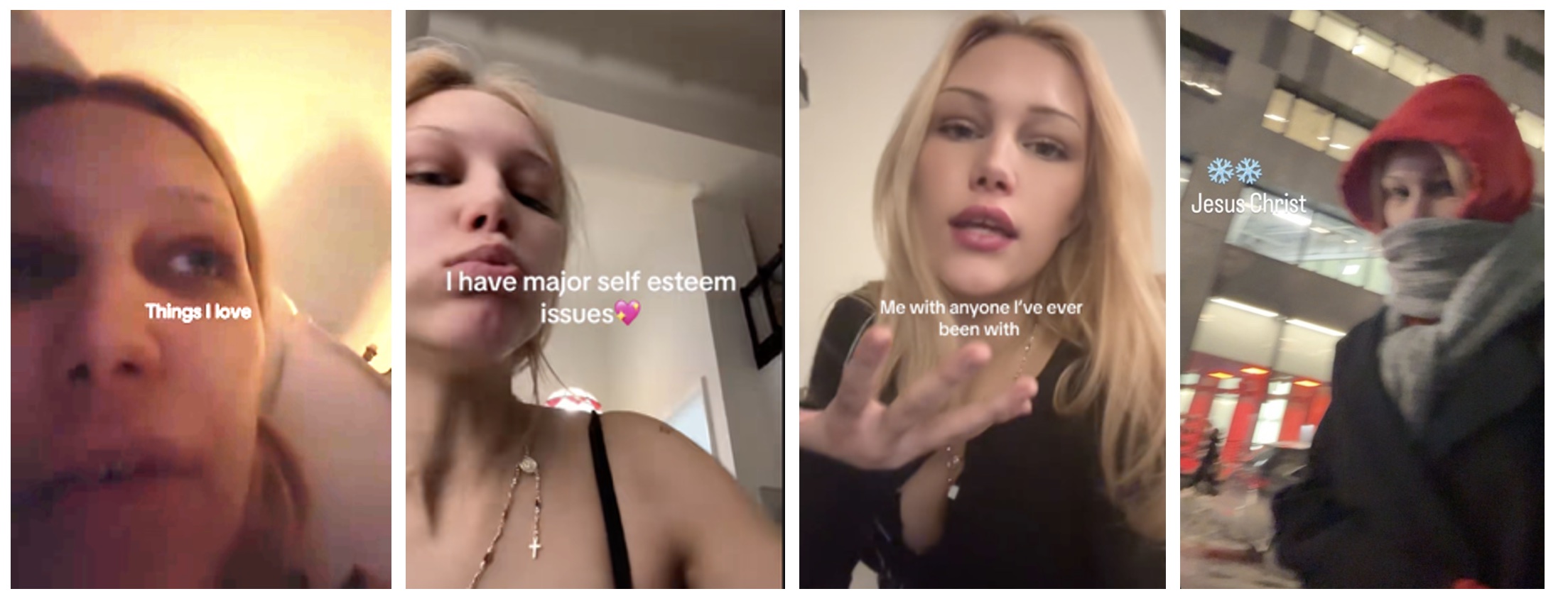 As was her habit lately, Grace also posted several times on TikTok. With the captions "Things I Love" ("Idk what this account is"), Grace listed all the thing she loved: "Eggs, cottage cheese, jalapenos, and cream cheese, getting magazines at an airport, facemasks, I love drinking and watching jazz music, I love mustard, I love collecting antiques, I love red wine, Hendrix gin martinis, especially with blue cheese olives, I love smelly expensive cheese, I can appreciate it, will enjoy it. I love record players and spinning vinyl. I love caviar, even cheap caviar. I love jammies, I love eating in bed, I love YouTube videos, I love new clothes, I love smoking weed and eating fast-food, I love xxxx bottoms."