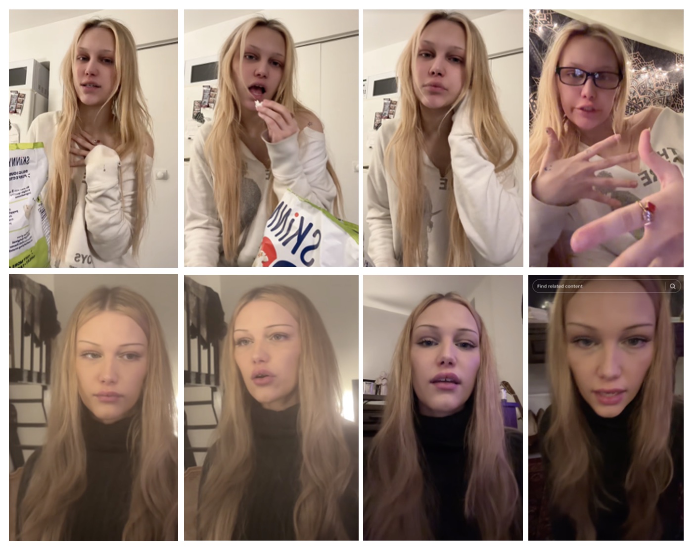 Grace was bored and couldn’t sleep, so she posted a lot this day. Miming to Kelly Kapoor from The Office (played by Mindy Kaling), mining to a clip from the animated TV series "Bojack Horseman" with Bojack Horseman (voiced by Will Arnettt) and Doane Nguyen (voiced by Alison Brie), miming to a TikTok meme, and miming to a clip (at 1:18 in this video) from Fiona Apple’s "I Want You To Love Me". And she had colored her hair brown, for the first time.