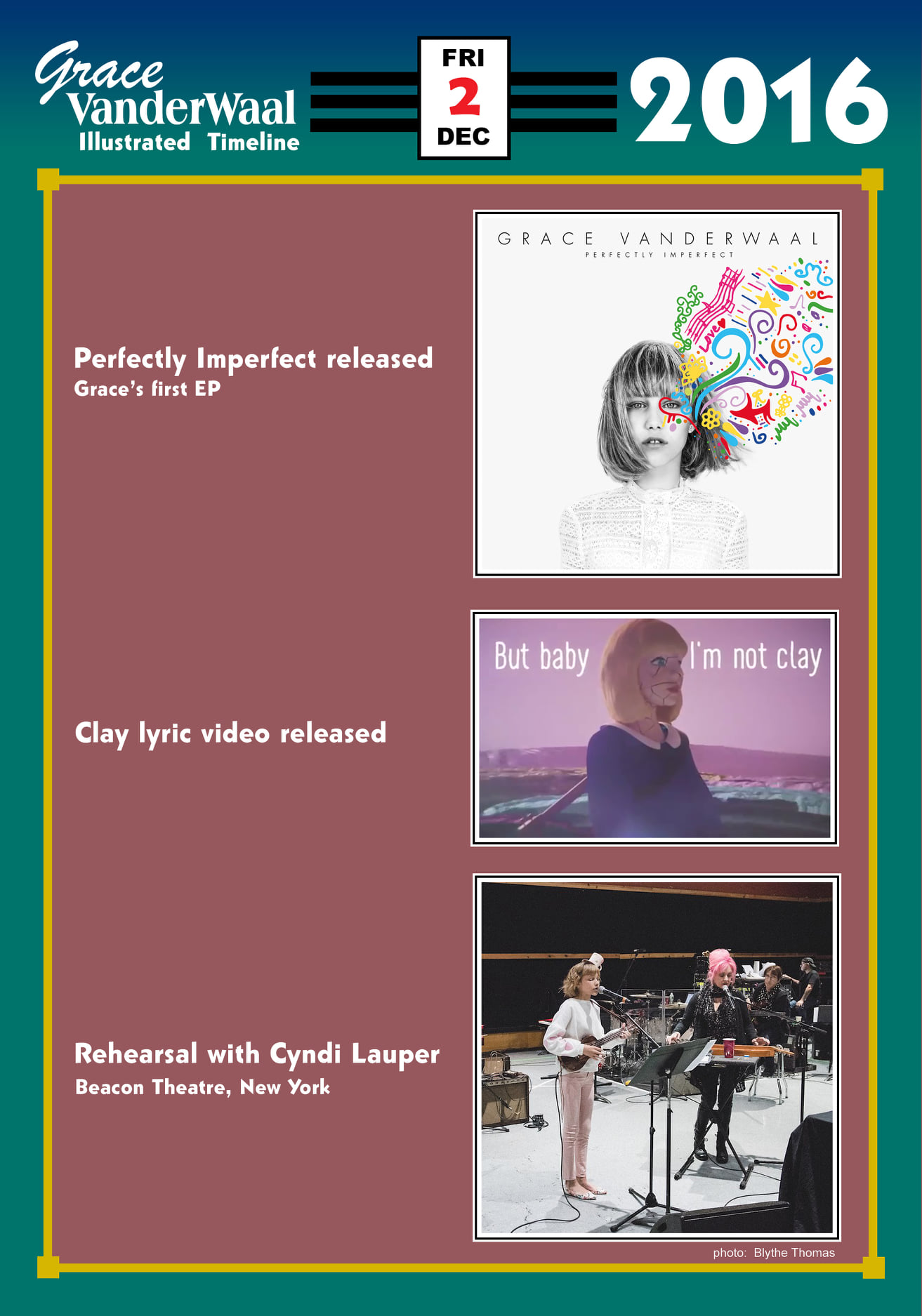 Perfectly Imperfect released, Clay lyric video released, Rehearseal with Cindy Lauper