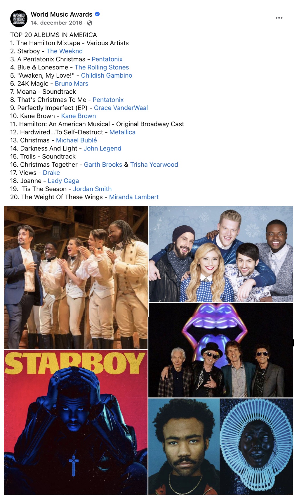 Perfectly Imperfect was no nine on the World Music Awards' top 20 albums in America in 2016.