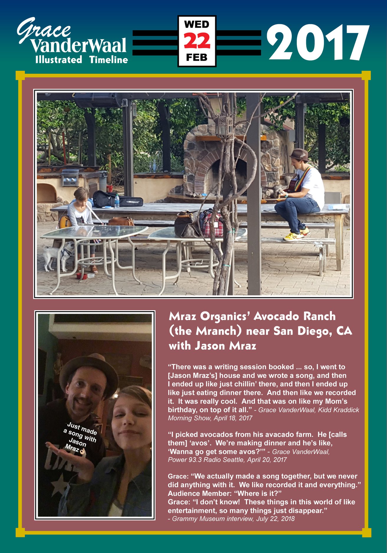 Based on Mike Kertok’s GW Timeline at the FANderWaal News Facebook group
