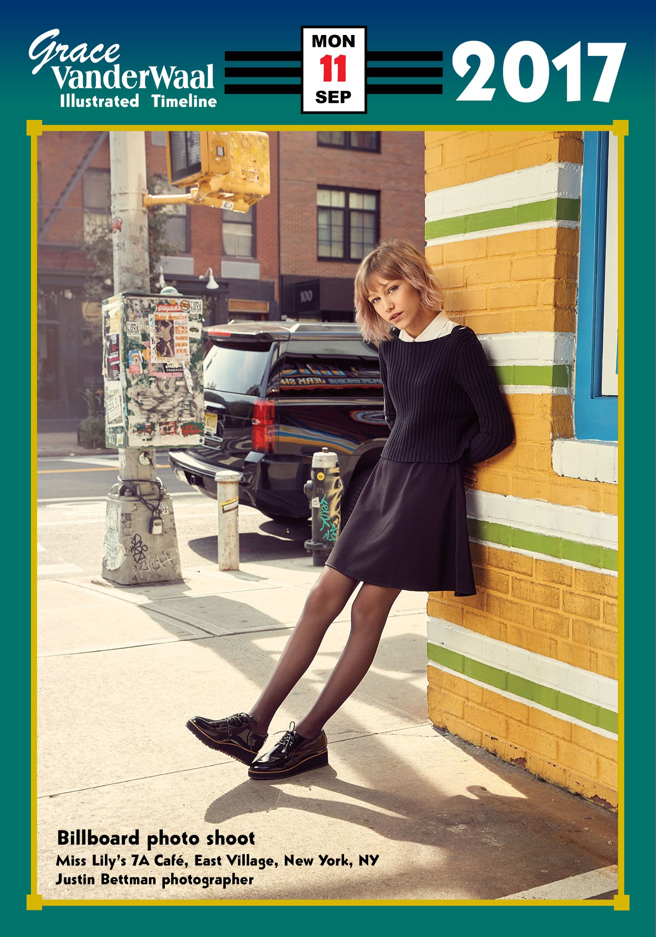 One of the pictures from the photoshoot was used for a brief text about Grace's then-manager, Jake Udell on Billboard's website. (You have to scroll to a little more than halfway down the page to get to it). Grace had the following to say about Jake: "Jake doesn’t think the way most people in the industry do, that makes him stand out to so many young artists." The other artist in the picture is "Gallant" who was also managed by Jake at that time. Justin Bettman took the photo at Miss Lily’s 7A in New York. That article was published on Billboard's website on October 6, 2017.