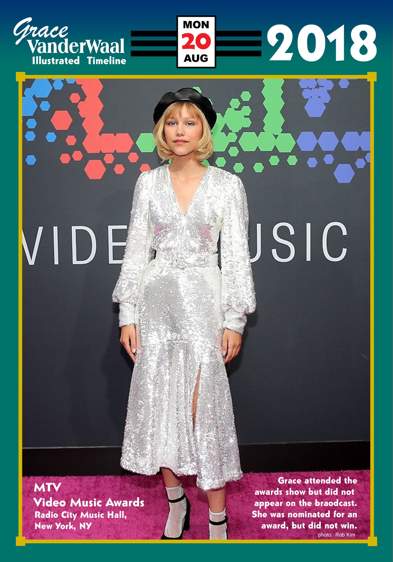 Grace went to the MTV Awards with her sister Olivia. She was nomintated for best push artist of the year. The award went to Hayley Kiyoko. Grace later that year won the MTV Europe best push artist award.