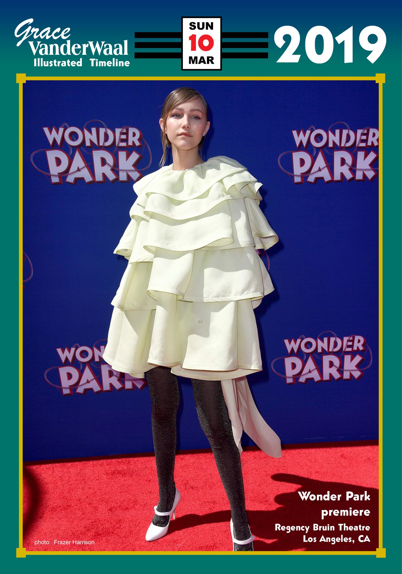 Grace wore a ruffled lime-green Marc Jacobs S/S 19 dress