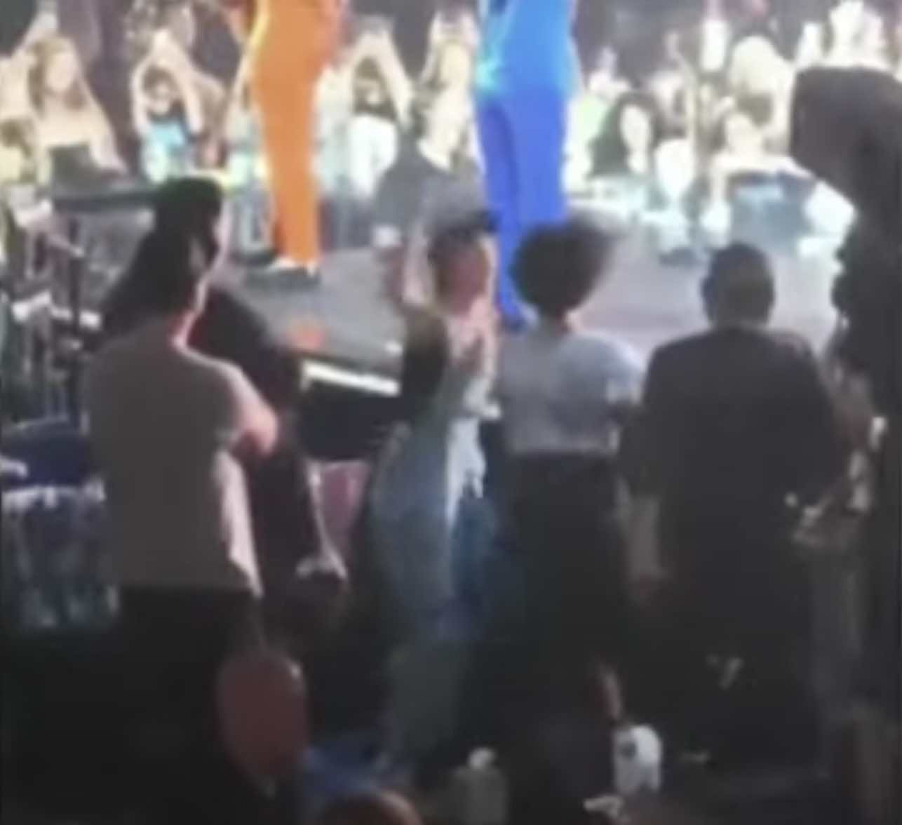 (Blurry image taken off video. Grace is at the front of the stage with Melissa, to the left of the camera)