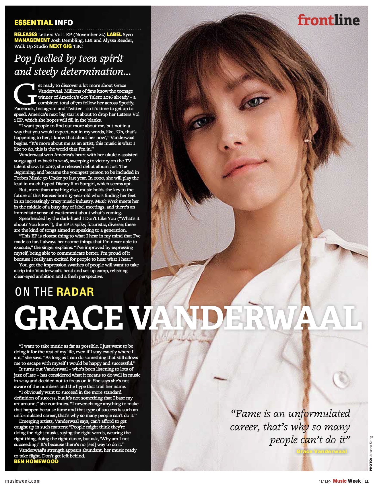 Grace was featured in the British Music Week Magazine (a trade publication for the British Record industry), interviewed by Ben Homewood, about Letters Vol 1. (you can read what she talked about on the catalog page for the release).