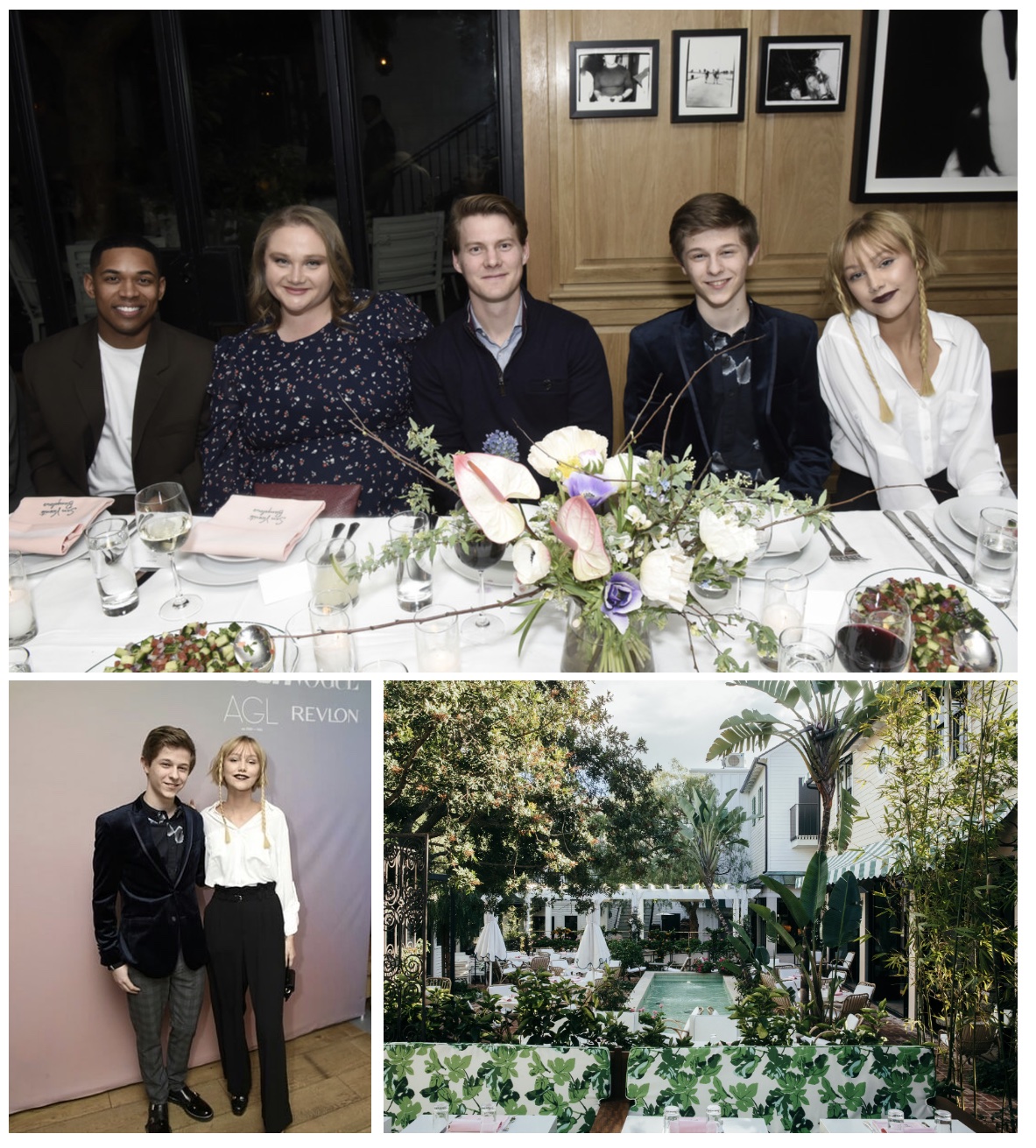 Grace attended the 2020 Teen Vogue Young Hollywood Dinner. At the table from left to right, Kelvin Harrison Jr., Danielle Macdonald,, Adam Cropper, and Graham Verchere. The dinner was held at San Vicente Bungalows, in West Hollywood, California.