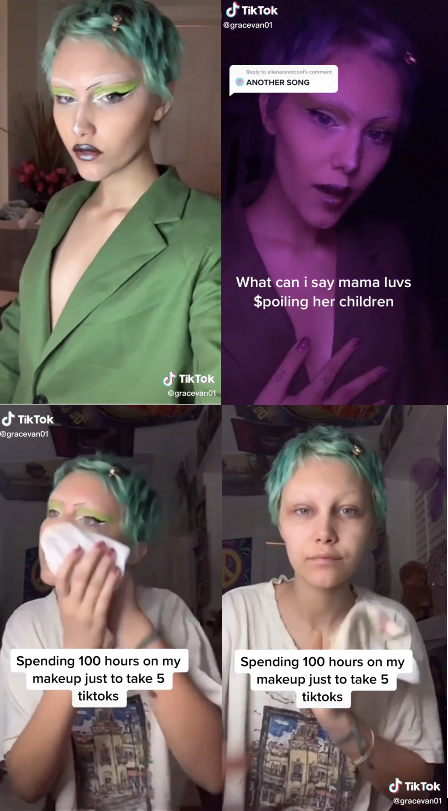 Grace teased her new single several times on TikTok. Once while putting on makeup (link above), once with the makeup and finally while taking the makeup off