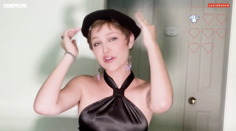 Grace in a Cosmo video testing her tastes in the finer things in life