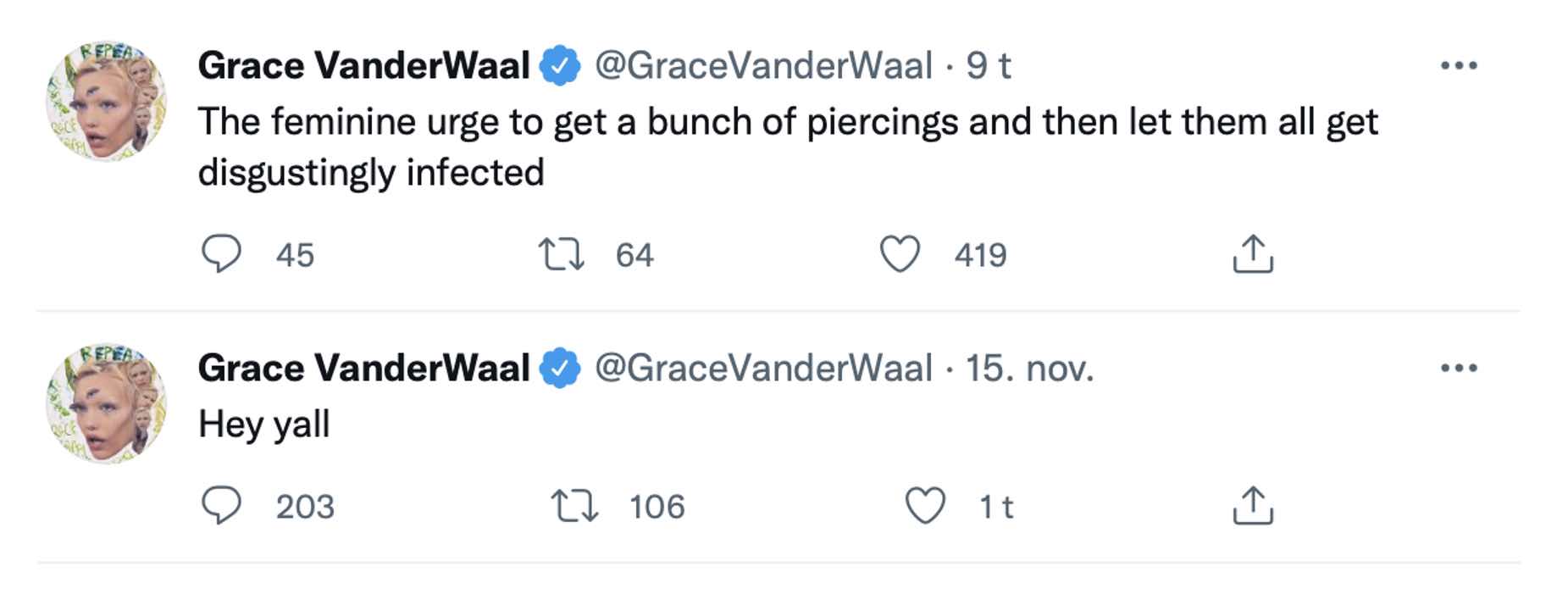 Tweeting about … piercings.