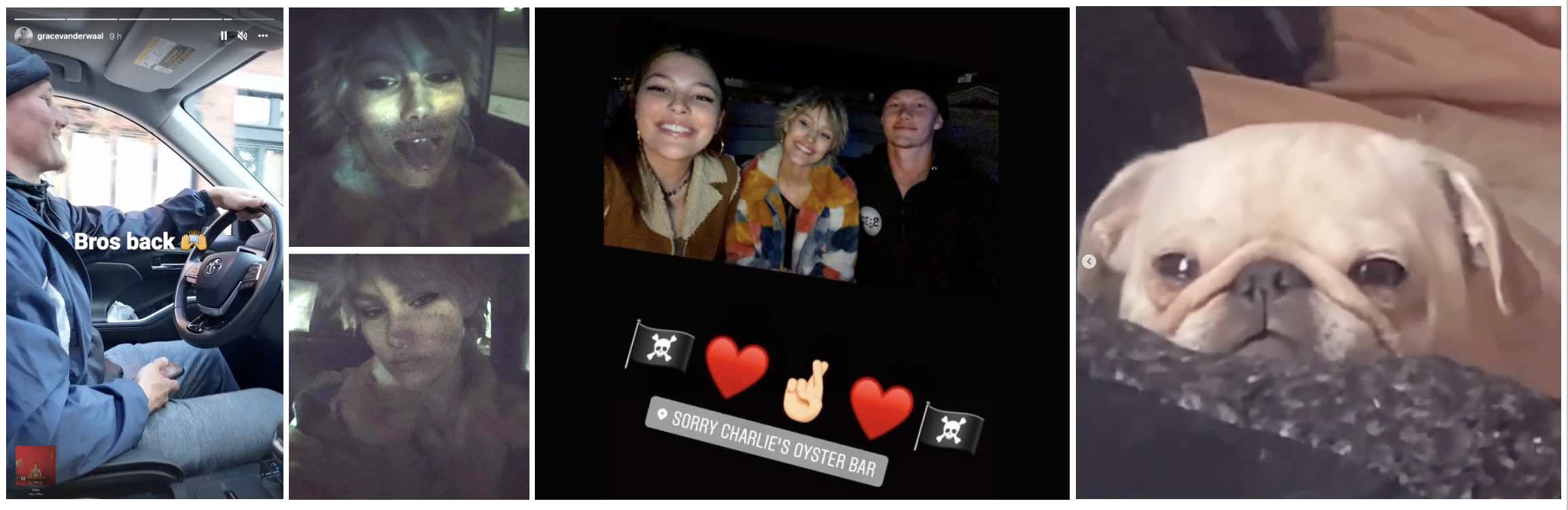 (The car-selfies are from an IG post, the picture of Jacob and the still of Frankie (from video) were posted on IG Stories. The picture of the three of them is from Jacob's IG Stories. The video with Frankie was originally posted on Jacobs IG Stories with the caption "I missed my bug ❤️".)
