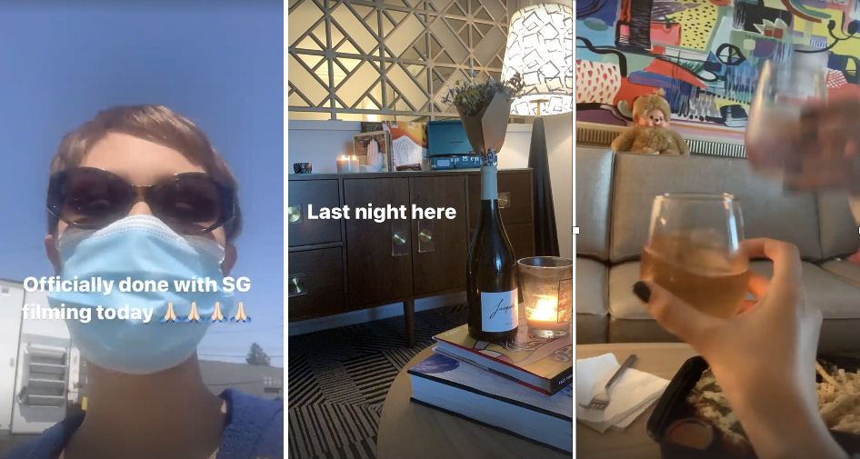 Grace went on IG live where she improvised two songs, sang one she had recently written and played five produced songs from her computer, four of them for the first time. She talked about how, as soon as she was done filming she wanted to do all the things she had not been allowed to do while filming, like painting her nails and bleaching her hair again, The hair job was not successful though, it turned orange. So, she was wearing a hat because it was so embarrassing. She also talked about wanting to get more piercings and tattoos. She wanted a big shoulder-tattoo, and a bar on her ear. She would have to go to New Jersey to get it – as for her other tattoos, because she had to be 18 in many other states, to get a tattoo.
