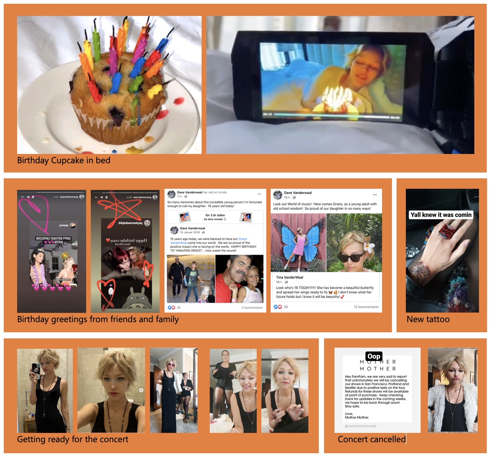 Grace went live on IG for half an hour while waiting to go to the concert, and for Olivia to get ready. Grace was ready much too early and was very bored – and excited about going.