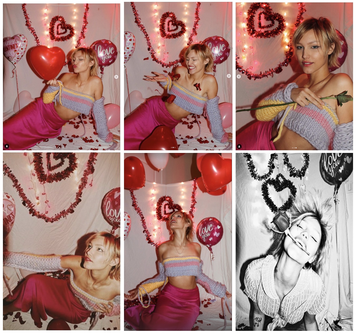 Posted on Instagram and on Instagram Stories with the caption "Be my valentine or whatever? Pt 1 • • 📸-". Photos by Grace's friend Carson Page. The black and white photo is from Carson Page's own Instagram.