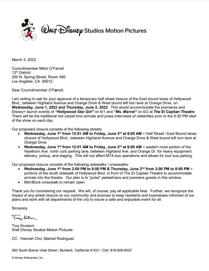 An application for street closures from Disney revealed that Hollywood Stargirl would have its premiere on June 1 2022 at The El Capitain Theatre in Hollywood.