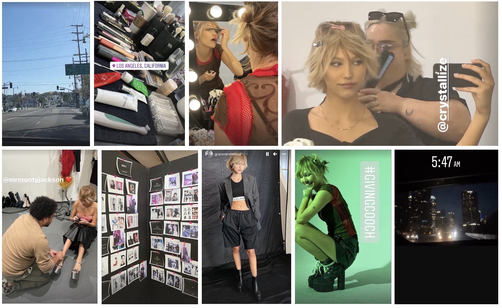Grace went to LA for a fashion photoshoot for the French luxury brand Celine. She posted a string of photos from the event on IG stories.