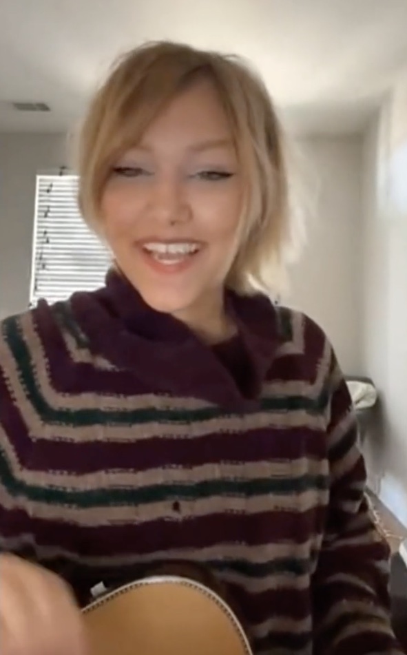 She played a good part of the song from her computer (starting at 18:23 in the video). About the beginning of the song, she said: “It’s like driving in your car, feeling so …. Like playing Liability by Lorde and sobbing.". There was some lagging in the playback and a few pauses along the way where she commented. She was “Very nervous if people are going to like it".