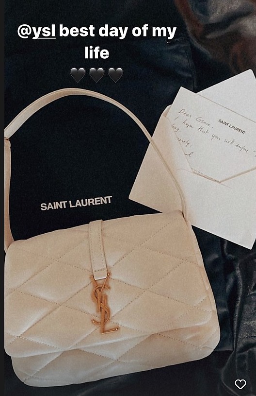 Grace was gifted a Le 57 quilted leather shoulder bag from Yves Saint Laurent. (retail priced at that time, around 2.000 Euroes)
