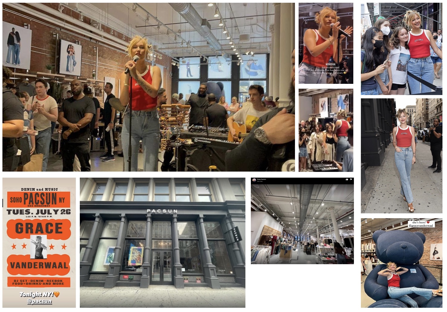 The event was to kick off PACSUN's Back-to-School #MyDenimStory campaign. It was announced by Pacsun on SOME with the caption: "NYC! 🏙 join us this Tuesday from 5-9 pm at our Soho location to celebrate the launch of our new #pacdenim styles! We’ll have food + drink, denim customization, goodies from @reebok, a special performance from @gracevanderwaal, and so much more. 🎵 it’s open to the public, so tell your friends and don’t miss out!"