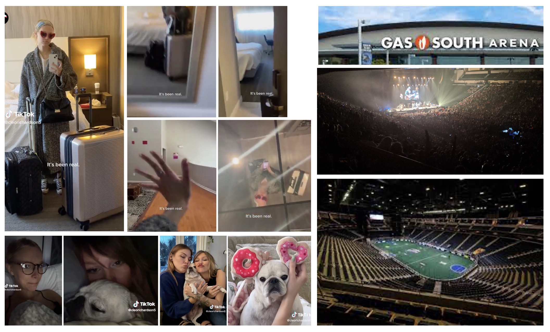 Grace posted a video on TikTok with bags packed and leaving her hotel room in Atlanta for Duluth, about 20 miles outside Atlanta, to film the concert scenes at the Gas South Arena
