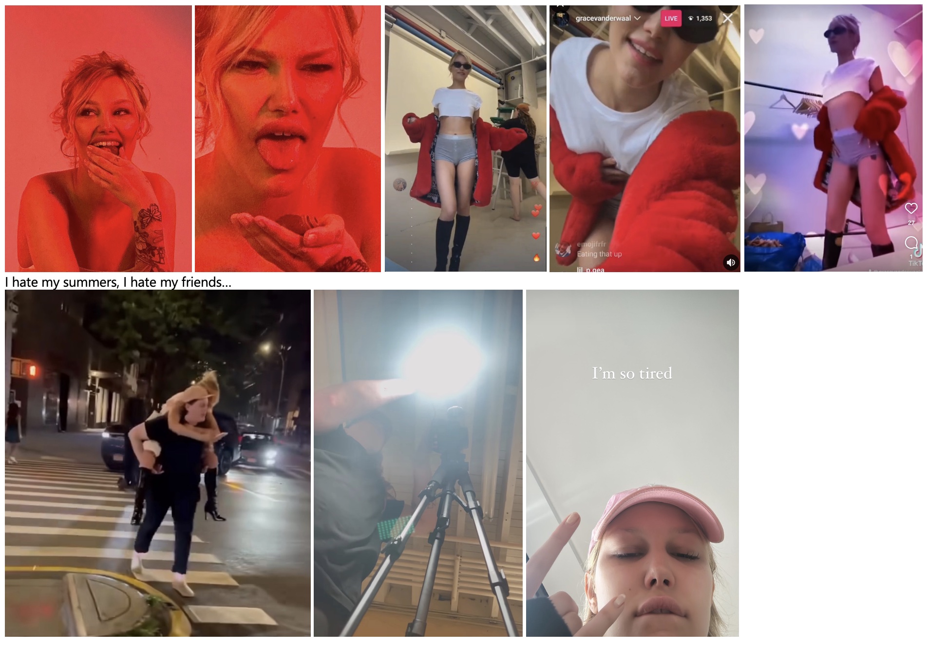 Grace posted a number of times on Instagram and on TikTok from the set of making a music video for "Boyfriends" with her old friend and video director Blythe Thomas. Blythe also posted on her own SoMe.