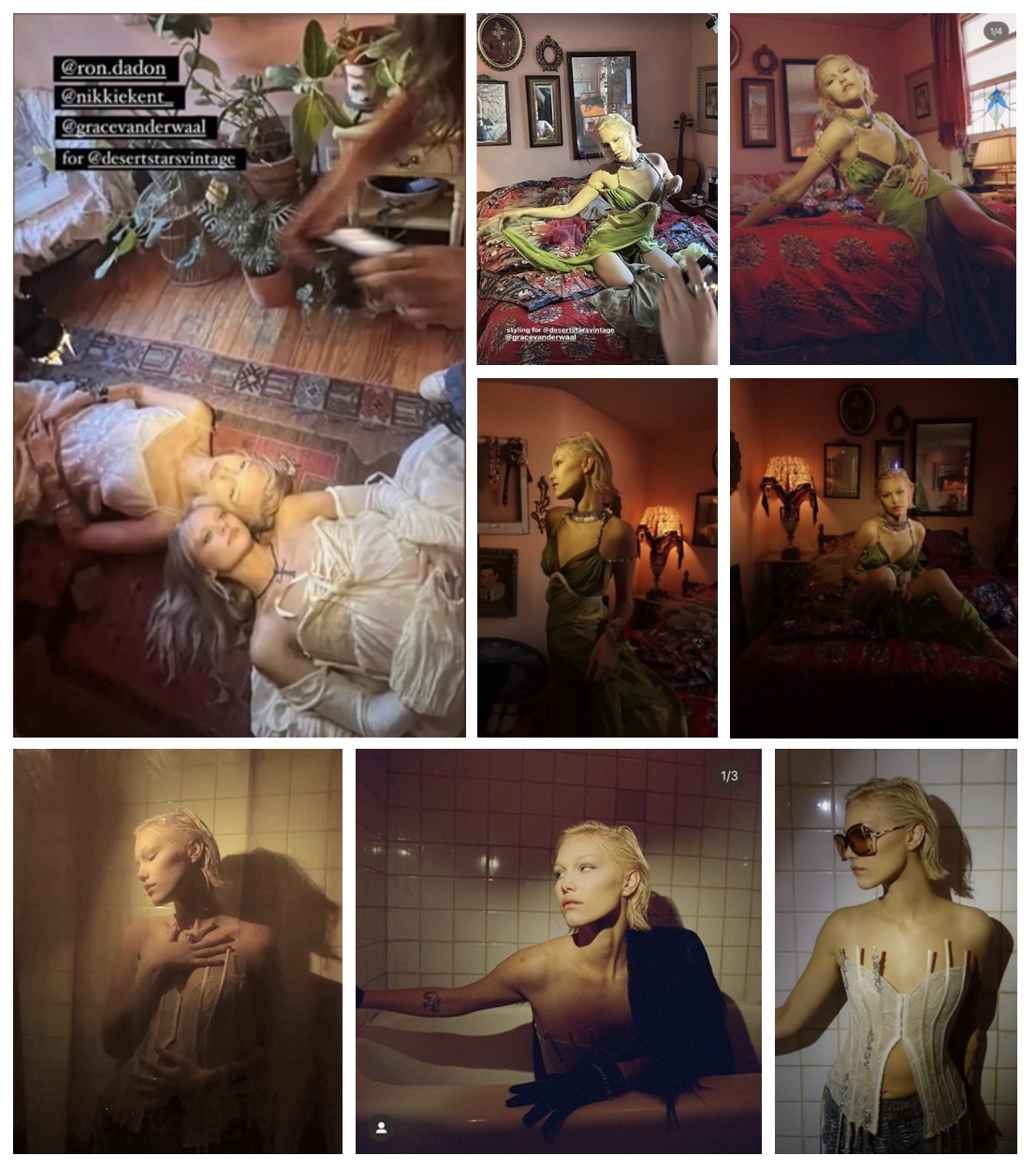 Grace did a second photoshoot for Dessert Star Vintage (The first one was on August 25). The shoot took place at two locations (maybe three). One was possibly in the Dessert Star Vantage shop (or the photographer Ron Nathans’s apartment), the second in a bathroom (possibly in the same apartment), and the third in the Metropolitan Bar in Brooklyn. The latter was probably partly staged, but the