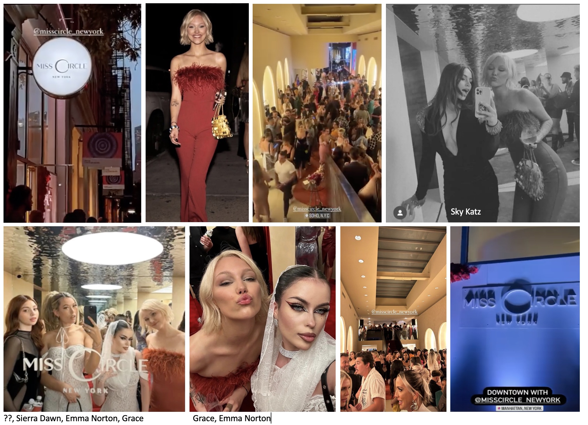 Grace was at the “Miss Circle" brand's showroom in Soho, Manhattan, for their New York Fashion Week event. She was photographed with Sky Katz, Emma Norton and Sierra Dawn. The event got plenty of media coverage, even in the English tabloid The Sun, who referred to Grace as “singer-songwriter and actress" Rapper and actress Sky Katz is an old acquaintance of Grace’s. Sky was also a contestant on AGT in 2016. They met again (by chance) in August 2017 and again at The Anti Social Gala in June 2023. Emma Norton, better known as EmmaNortss online, is an American social media influencer, fashion model, actress, cosplay model, and content creator who is known for sharing short dancing and lip-sync videos on TikTok while on her Instagram account she is known for sharing her fashion, makeup, lifestyle photos, videos Wedding photographer and TikToker Miss Circle is a New York-based indie label, with all dresses designed in-house at the brand's Soho showroom. The company was founded in 2016 by Isabel Deng.