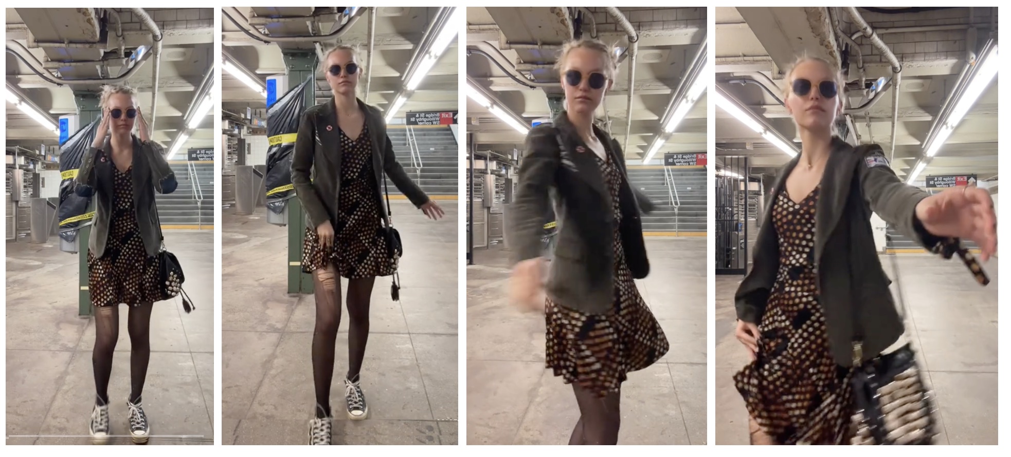 Grace parades her Outfit Of The Day at a subway station in New York, set to a few bars of Lana Del Ray’s "Mariners Apartment Complex"