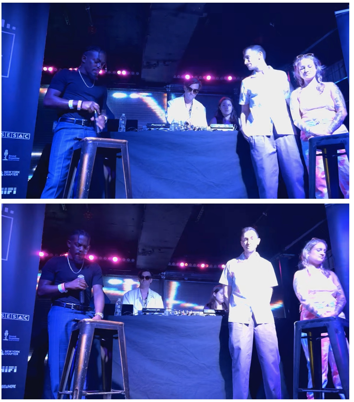 On the final day of Anti-Social Camp, the songs and productions that had been created through the week were played back on stage. One of them were "Felt So Good" (Provisional title), with Grace as the lead singer, produced by Kristine Kruta (on stage at far right).
