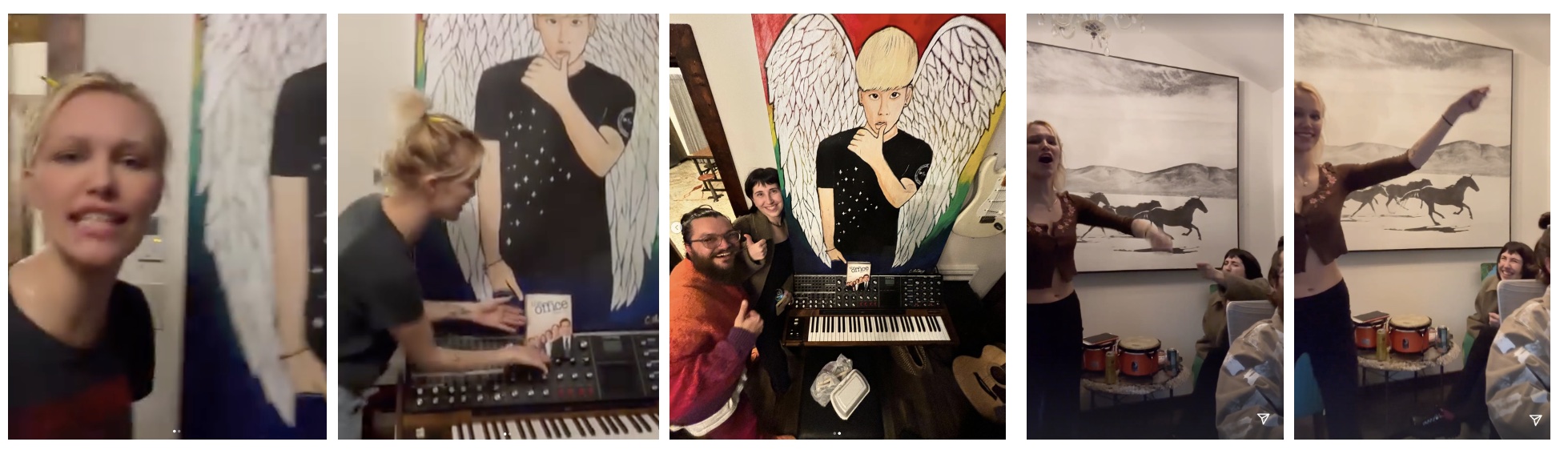 Grace posted a short video on Instagram stories where she goofed around with some friends. In the video, she said (pointing to the keyboard): "This is my alter right here, just some things that inspire us to keep the creative juices going. You can see we have the office season 5; it’s the best season.". The next day, she posted another short video on IG stories from the same evening (the last two photos); in the video, she shouts "more - more incoming" while some music we have not been able to identify is playing in the background (but we do believe it is a new song by Grace, and we have a suspicion that the people she is with are part of the production team).