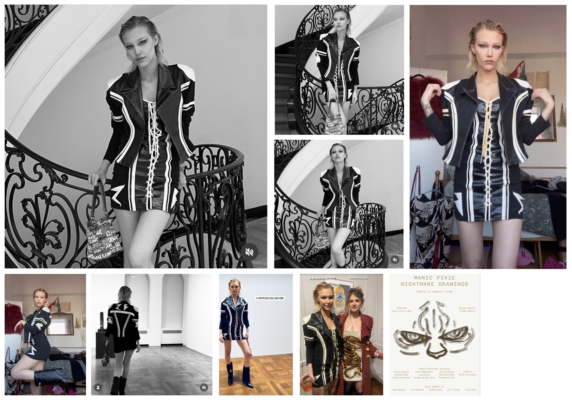 Grace was photographed with at least one of the artists, Isabelle Brourman. From Instagram posts it appears that Grace got her outfit from her friends at Dessert Star Vintage, in Brooklyn.