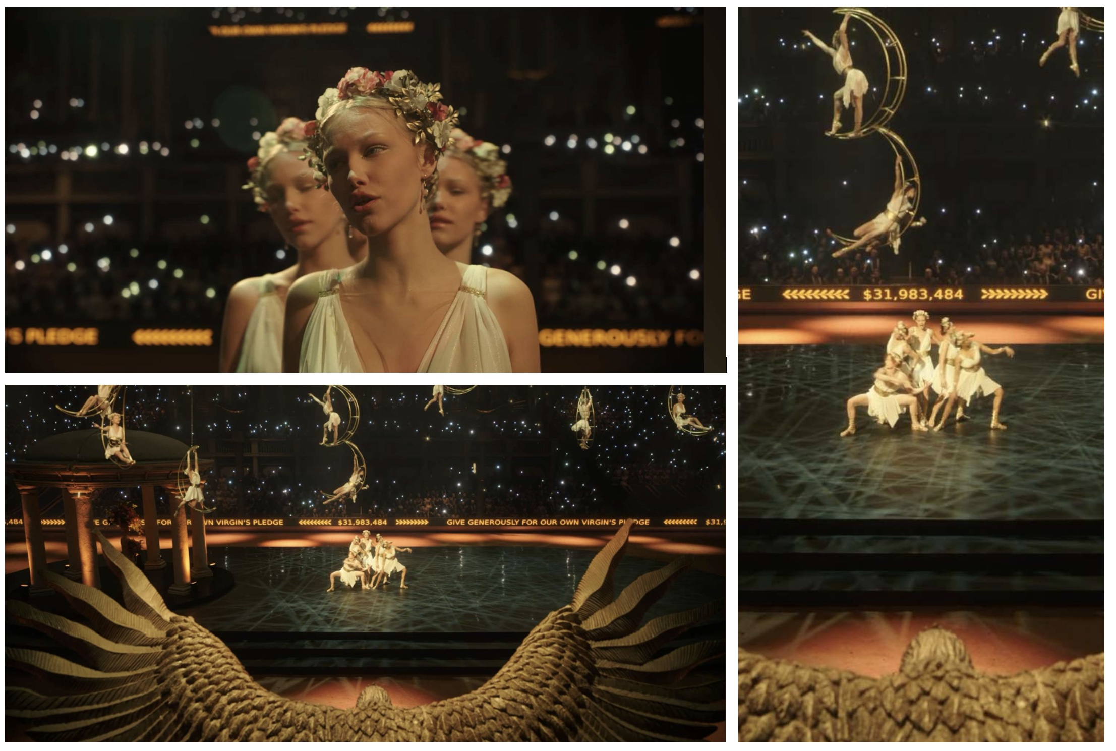 Two days before the first official screening of Megalopolis at the Cannes Film Festival, a new trailer was released where we got the first (very short) glimpses of Grace as Vesta Sweetwater. (the short glimpses of Grace are at 0:44 and 0:55 in the video; they are no longer than a second each)
