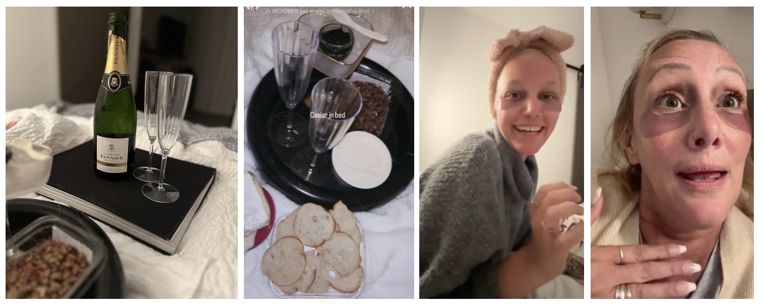 Tina (and Grace) posted on Instagram: "Grace treated her momma to a caviar and champagne movie night last night. A fun memory made 🥰😃"