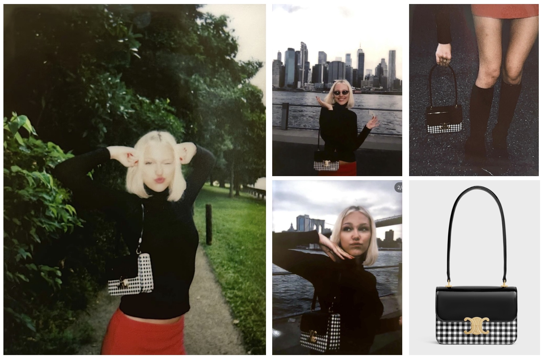 Grace posted a set of pictures of herself sporting a Teen Garance bag from Celine, designed by their creative director, Hedi Slimane. The bag (made of calfskin and lambskin) retailed for the modest price of 4,100 USD.