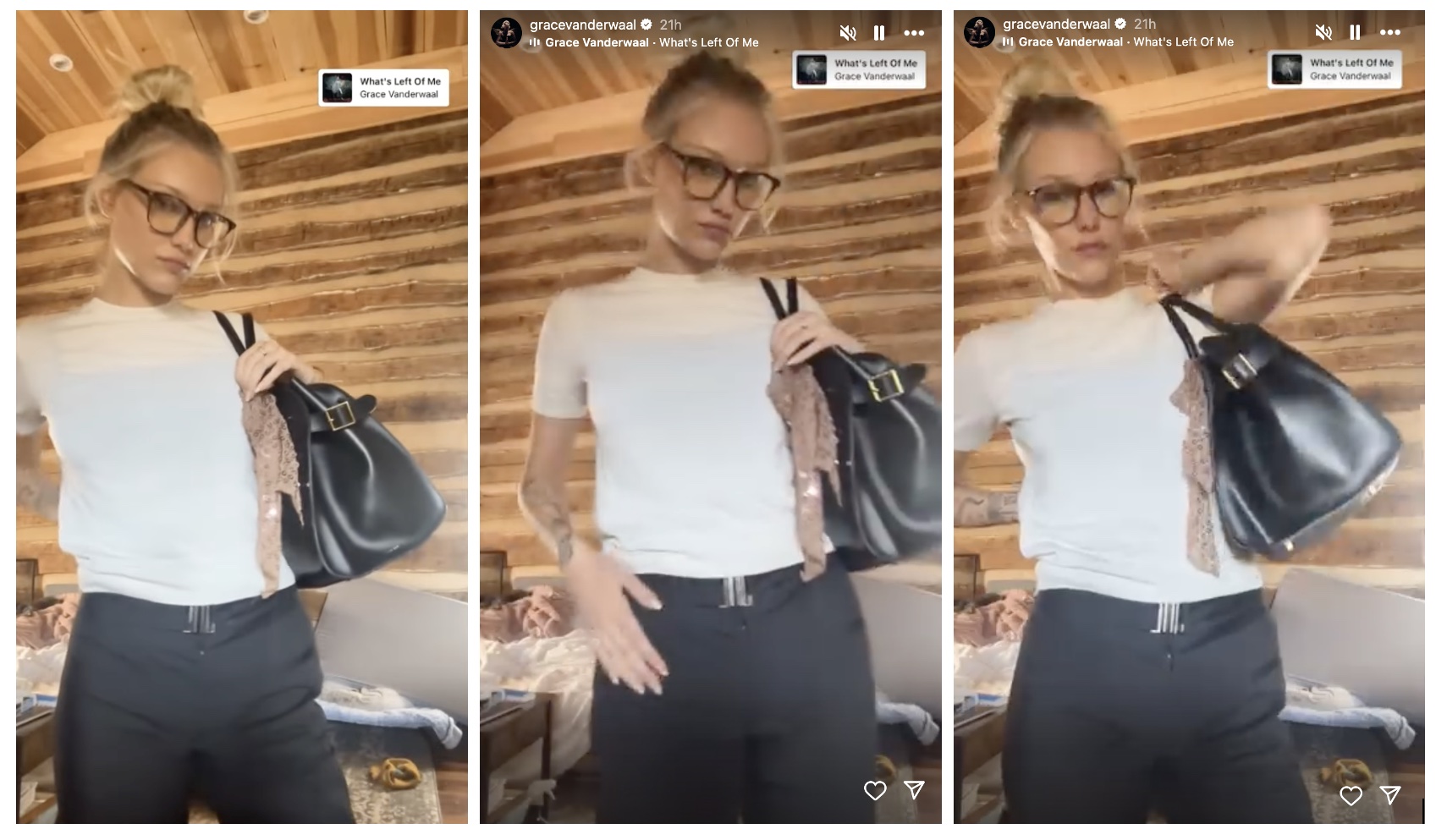 Grace posted an Outfit of The Day video - still in the cabin near Charlotsville Virginia, where she spent a Halloween getaway with her family