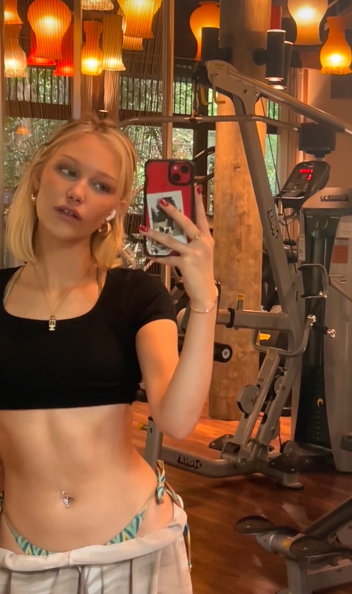 Grace was on a short vacation in Cancun, Mexico with her sister Olivia. Here posting on IG Stories from the hotel gym.
