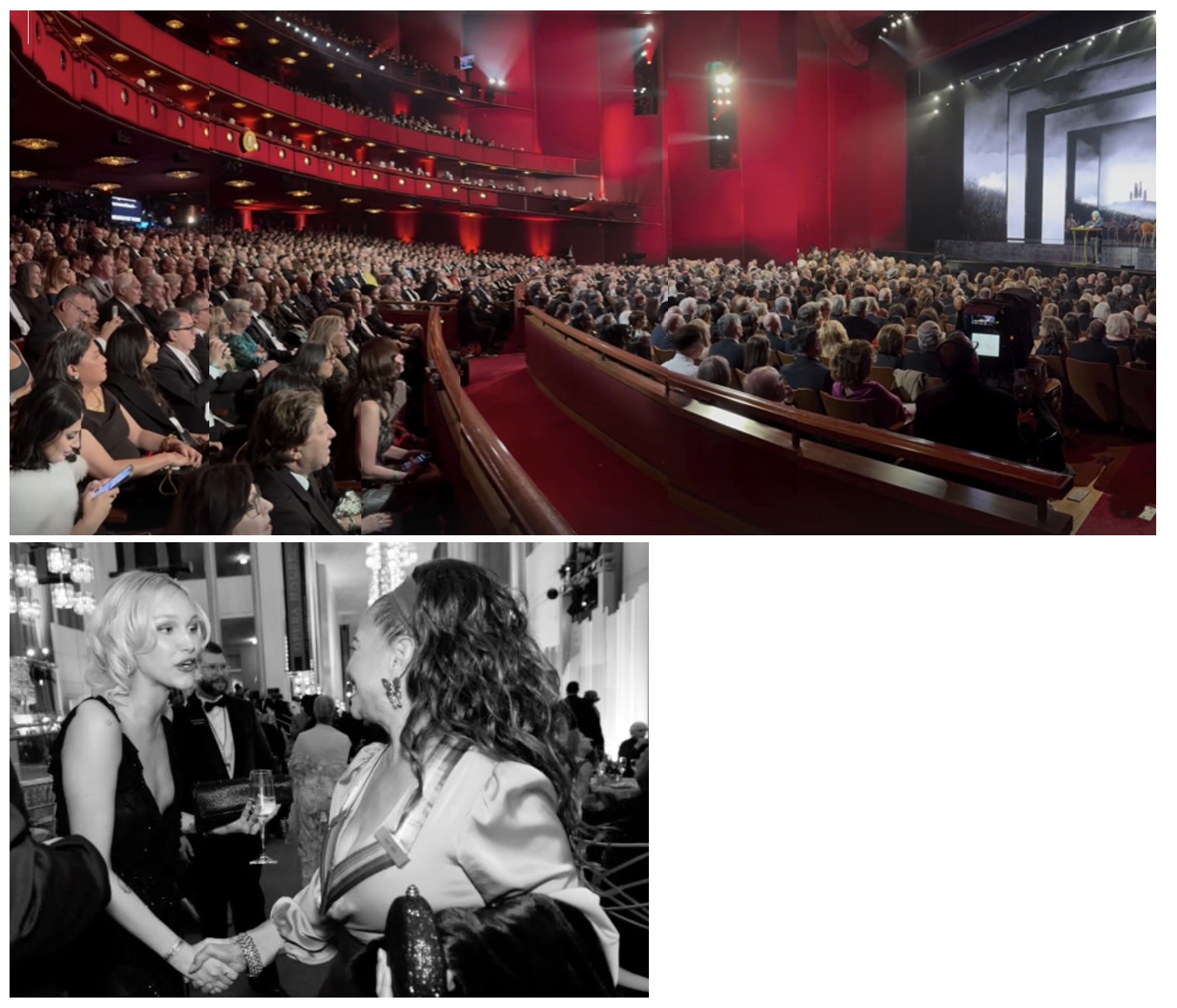 Grace said that she was very nervous "I was in rehearsal, and I almost couldn’t hold the microphone because my hands were trembling so badly. I get butterflies, I couldn’t sleep last night." In an interview just before this, Grace said that she was performing with a full orchestra and that at rehearsals, it was the first time she had heard strings live. (strictly speaking, not quite true: she was accompanied by a cello 13 times from 2016 to 2017, including twice on AGT (for Light The Sky and Clay), and she was accompanied by a violin as late as November 19, 2024, at the Grammy Museum Spotlight event). (Incidentally, the interviewer from AP did not appear to know that Grace had done anything since AGT and might not even have known that she was in Megalopolis)