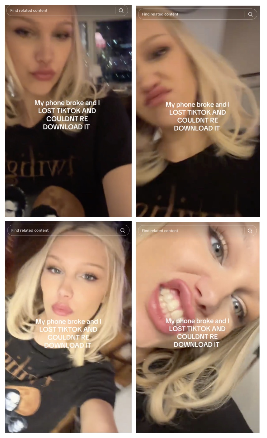 After a few weeks hiatus, Grace was back on TikTok. Turned out she had broken her phone: "So I broke my phone ON MY WAY TO CATCH A FLIGHT TO PARIS . And I was like dude wtf how am I gonna fly internationally this whole time with no phone. So I ran into Apple. Cried. Told them I’m ON MY ACTUAL WAY TO CATCH AN INTERNATIONAL FLIGHT and gonna miss it if they don’t give me one now. Anyway. This phone works now I guess so hi missed you sm"