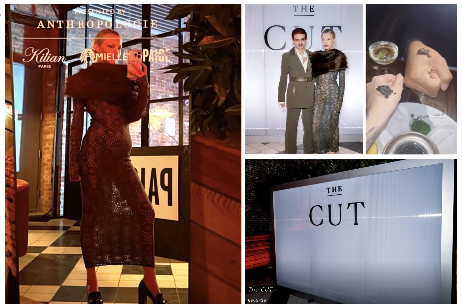 Grace attended The Cut and Anthrophologie After Dark Fashion Week Party. She wore a dress from Cicaedia, designed by Yitzhak Aaron. Grace posted from the event on Instagram with the caption: <í>"Last night NYC designer @cicaedia allowed me to wear this gorgeous handmade dress that’s more like a piece of art than clothes really. Thank you @thecut and THANK YOU @guybehindcicaedia so talented. 🚕❤️"