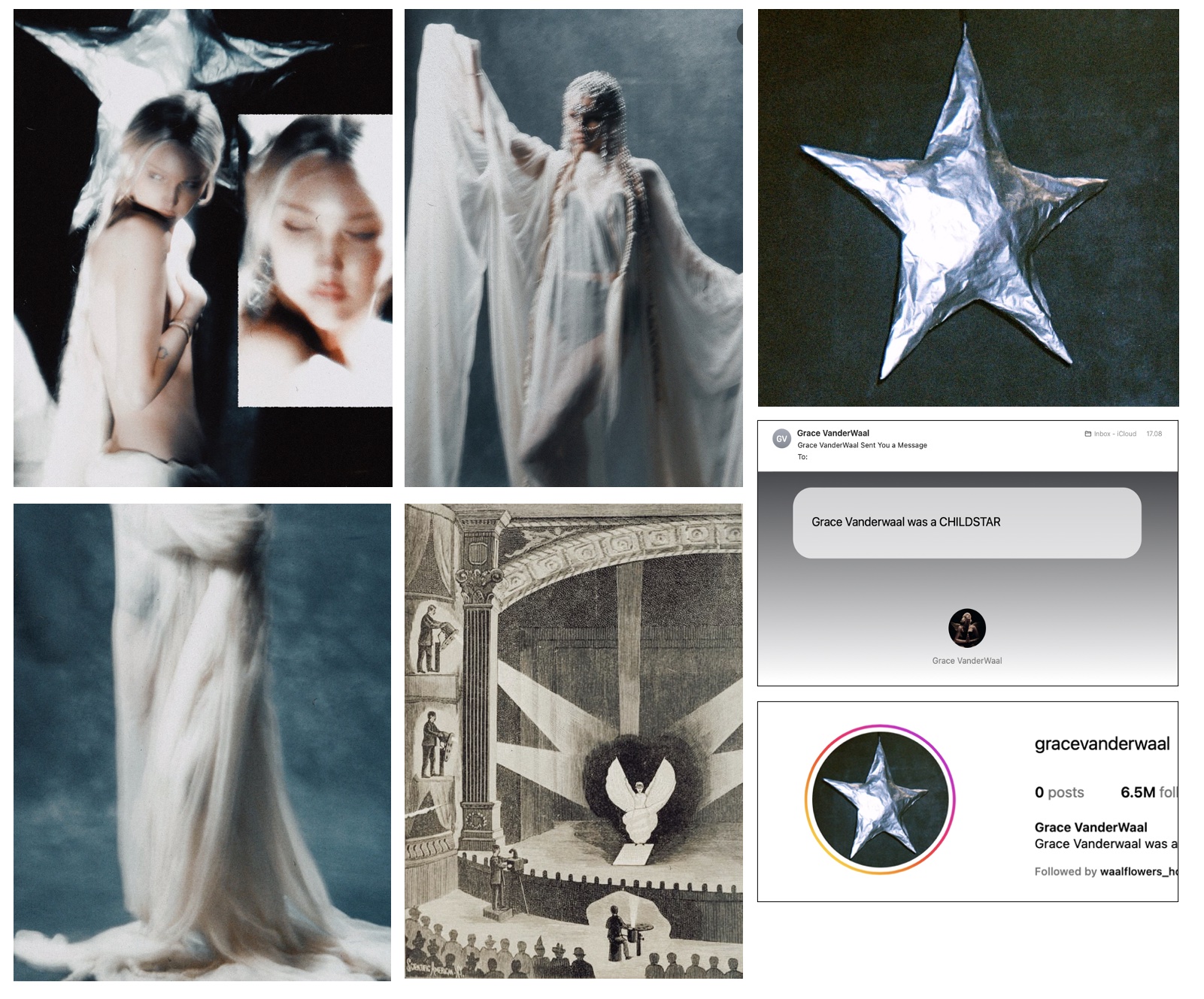She deleted all her Instagram posts (except a few of the latest reels), Changed her profile picture and sent a mail to her mailing list: "Grace Vanderwaal was a CHILDSTAR". Later, she posted a set of photos from the upcoming "Child Star" video with the caption: "The art of giving is in tandem with womanhood. Giving more than you have - secrets, smiles, fake laughs, adolescence, innocence, and just about everything you're made of. I am a performer; my existence is giving: some performance was taught, and some came from a real place of passion. Sometimes, I don't know when I'm performing and when the show is over. I think of this sentence I wrote in my journal a while back - ‘What's a woman without her body? What's a child star without a stage?"