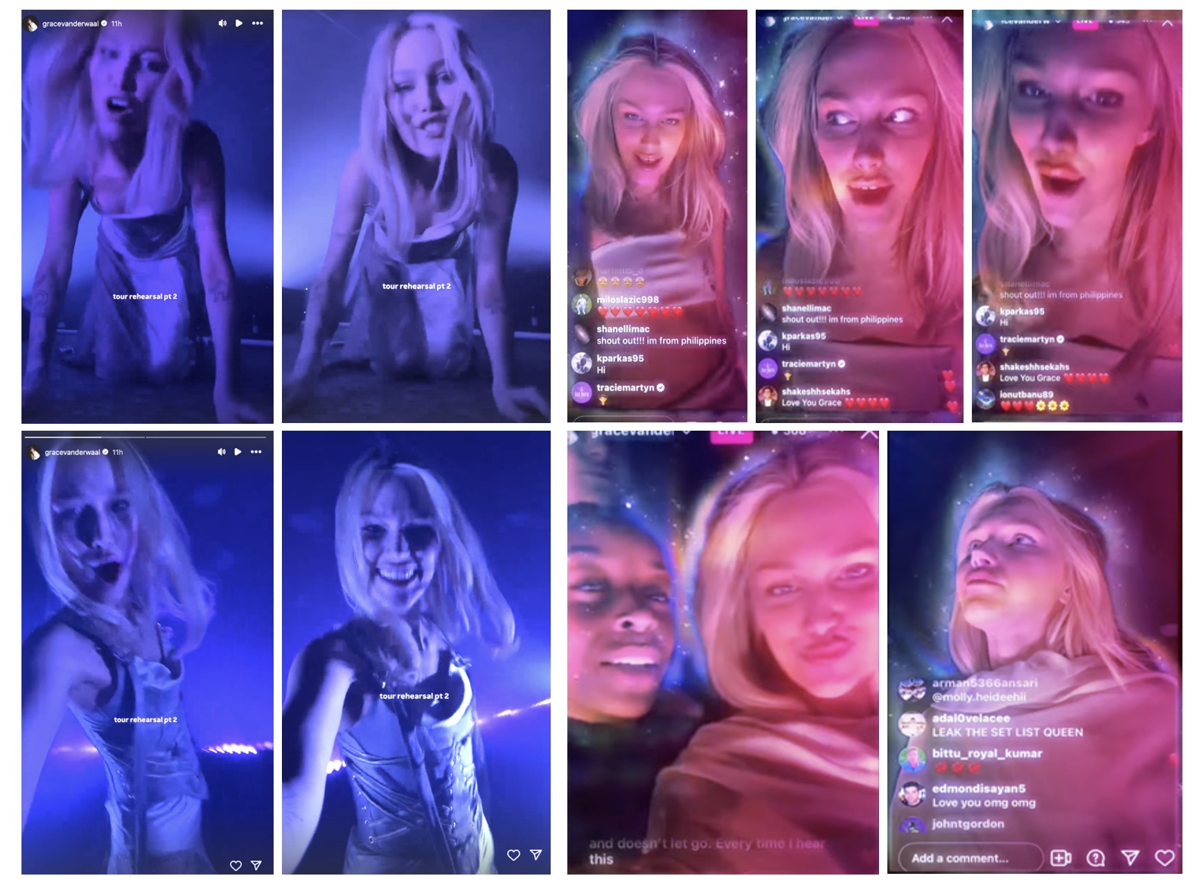 Grace posted a second day rehearsal video on IG Stories and did a Short live on IG Live, from the rehearsals.