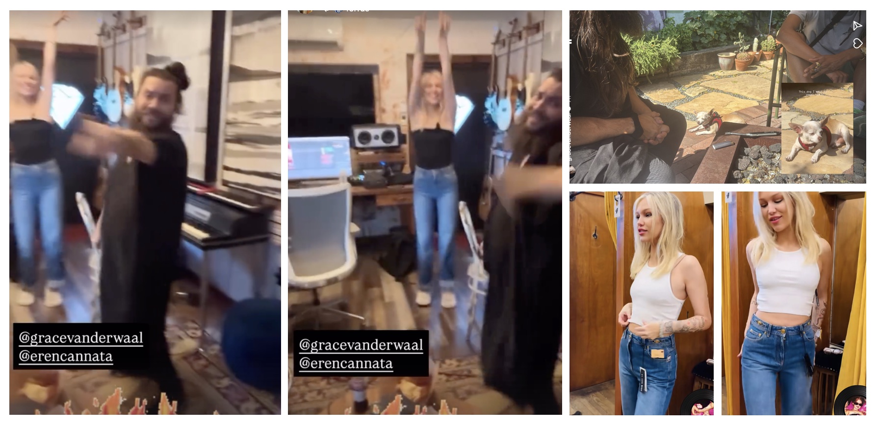 Grace posted from the studio, and from hanging out outside with “This dog – I want to steal him”. And she tried on new pants. ;-)
