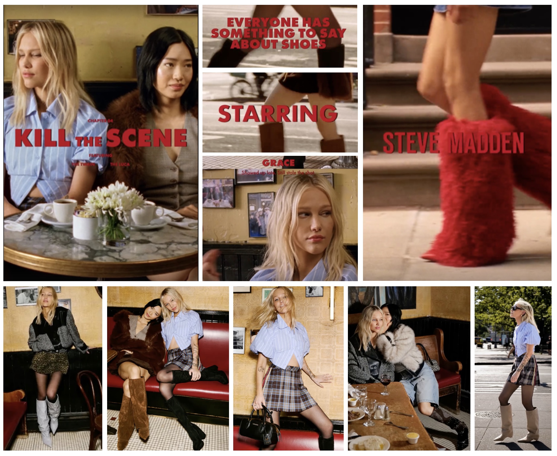 The high-end US shoe brand Steve Madden posted a teaser (On IG stories) for a set of videos for their "Everyone Has Something to Say About Shoes" campaign, featuring Grace and a number of other people. This was the result of the mysterious video shoot that Grace was at on June 24th and 25th, 2025. The video Grace was in, titled "Kill the Scene", was released later that day. In the video, Grace says, "You always dress like you already know the ending," and the other woman (Selina Yang) says, "I do". Caption for Grace: "Showed up late, still stole the shot".