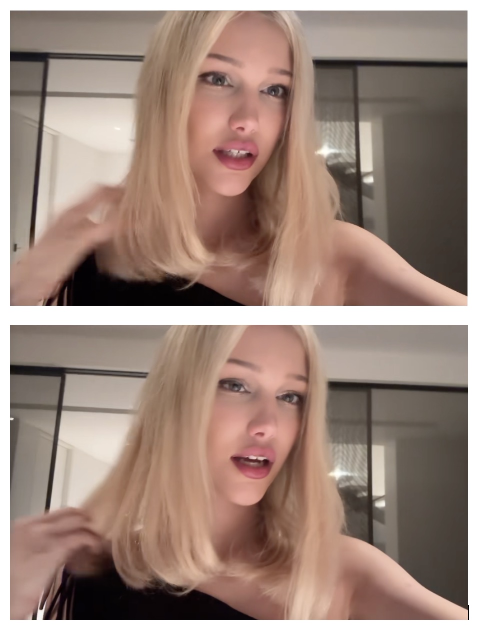 Grace mimed to a TikTok meme based on a scene from the short-lived TV series "The Idol" where Lilly Rose Depp as "Jocelyn" says (to Tedros, played by The Weeknd): "Why are you talking to me like I am new to the music industry? I’m not, you are". In the clip, the sound in the background is “Love Potion" by BJ Lips, featuring Princess Paparazzi.