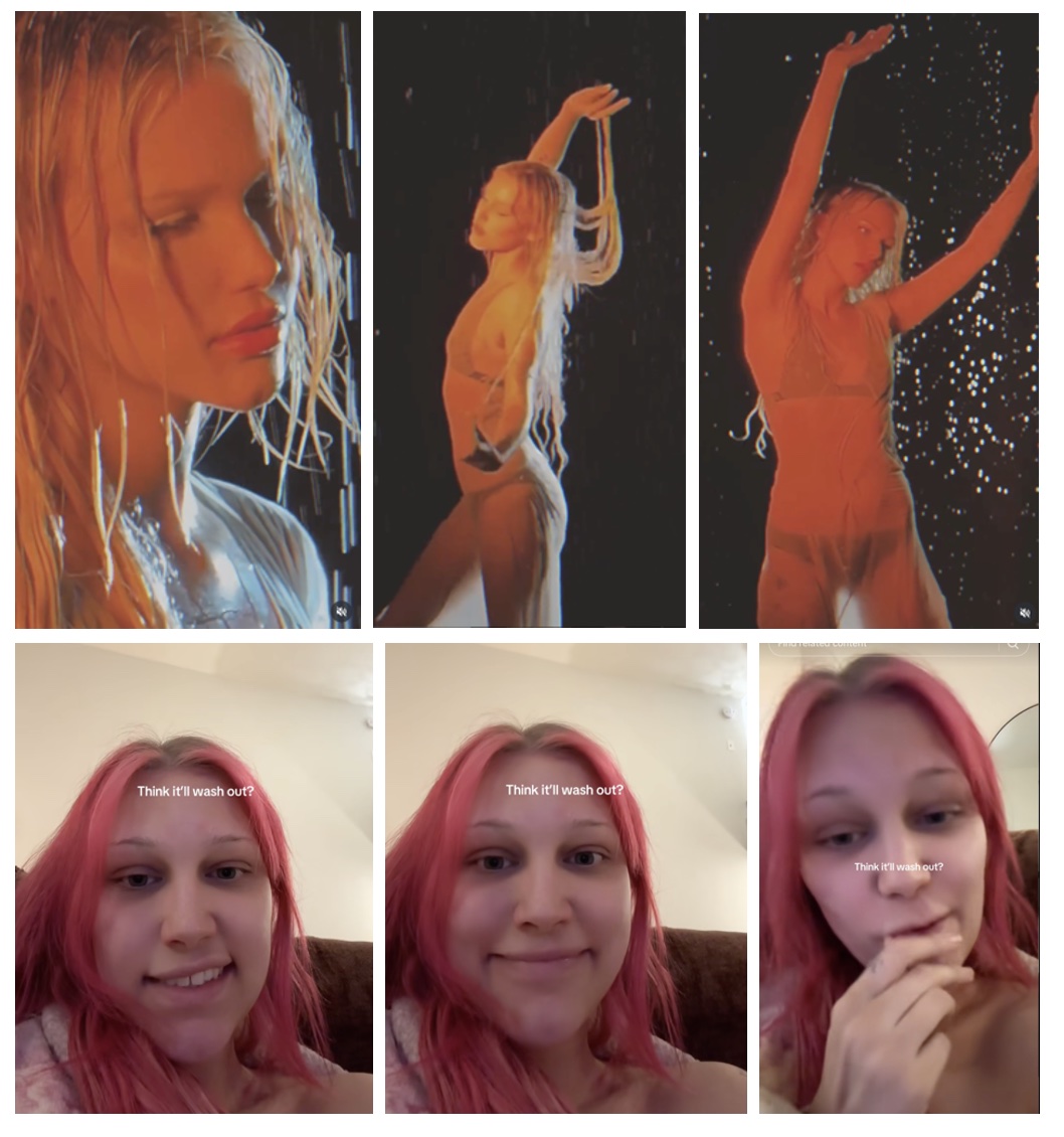 Grace posted more clips from her"“Do You Want To Get High" video-shoot, and regrettet dying her hair (caption "Think it’ll wash out?") saying “"I washed it twice".