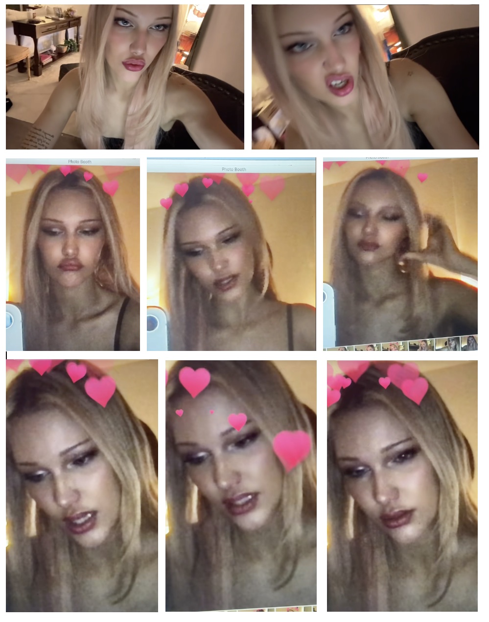 Grace posted three short Tiktoks. slightly miming to first the lines "I wanna know you talk about me. I wanna know that you go braging to your friends" from Holychild’s "Bathroom Bitch".. Second to Com Truise’s "4 Morant (Better Luck Next Time)". And third to Fay Webster's "But No Kiss".
