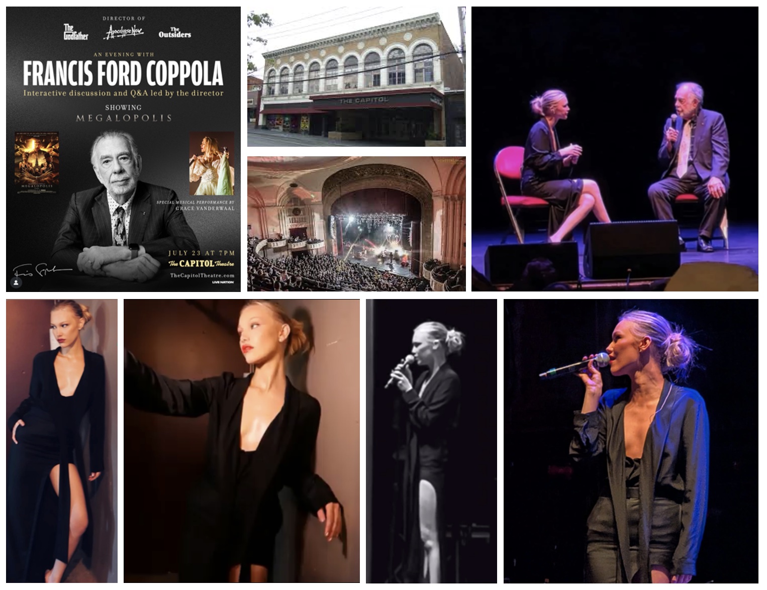 Very little social media content was posted from the event, and almost no mention of Grace’s performance. An audience member posted this: "A night to remember! The Q&A after Megalopolis was as unhinged as the film itself! Francis Ford Coppola is a man who never stops learning, and his head is full of information and ideas. he wants to share them with everyone! Three quick questions about the film, then a performance by Grace VanderWaal, then a discussion on the history of mankind and his ideas on the human experience, everything from the origins of metallurgy to the state of filmmaking. No moderator, just FFC and his assistant writing on a whiteboard. He didn't even finish his list of talking points because of tangents and questions. He could have talked for hours, but was cut off at about 90 min. If the tour is coming to your town, check it out if this sounds like your thing. (If you are going, hoping to hear him talk about the Godfather, etc., you are out of luck, tho.) Had the energy of a "GLTS at NYCC" for those who understand what that" ( Maryellen DeVivo on Instagram)